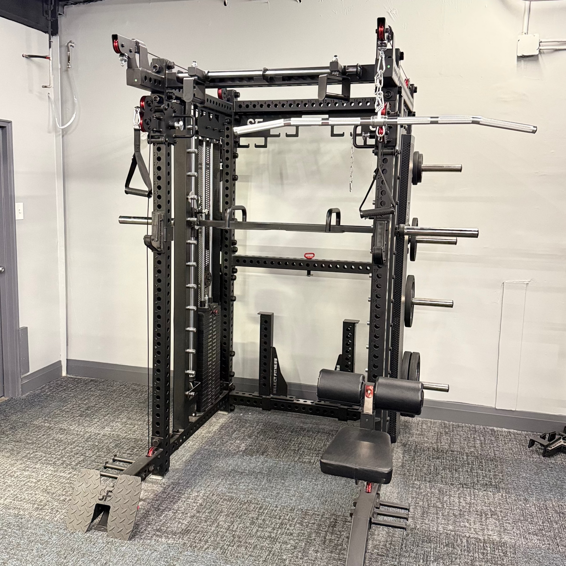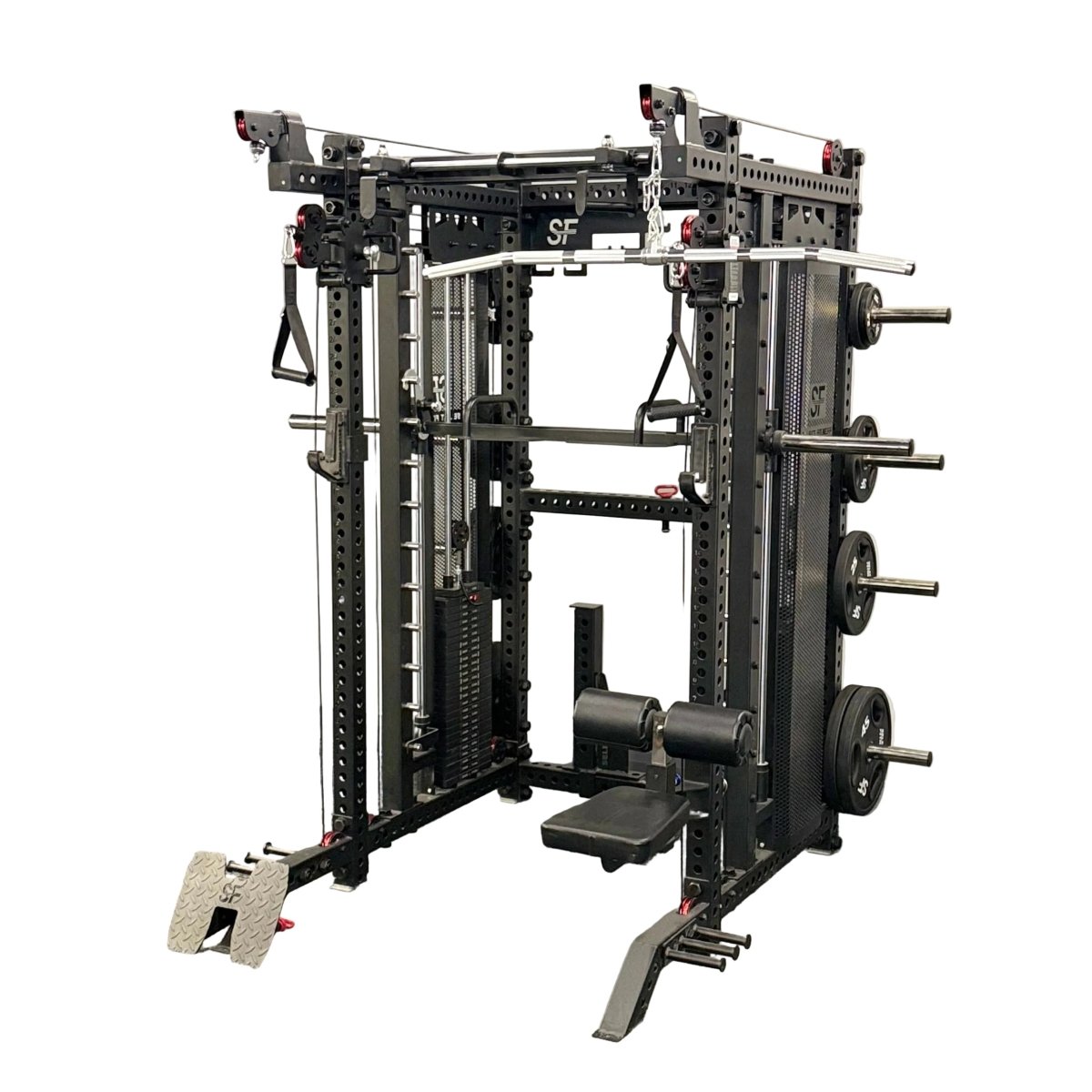 We took our best machine and made it even better. The Select Fitness X-Factor Smith now comes with an integrated Smith machine, delivering unmatched versatility for your strength training needs. Combining the power of a half rack, a functional trainer, and the safety of a Smith machine, this all-in-one unit is built to elevate your workouts.