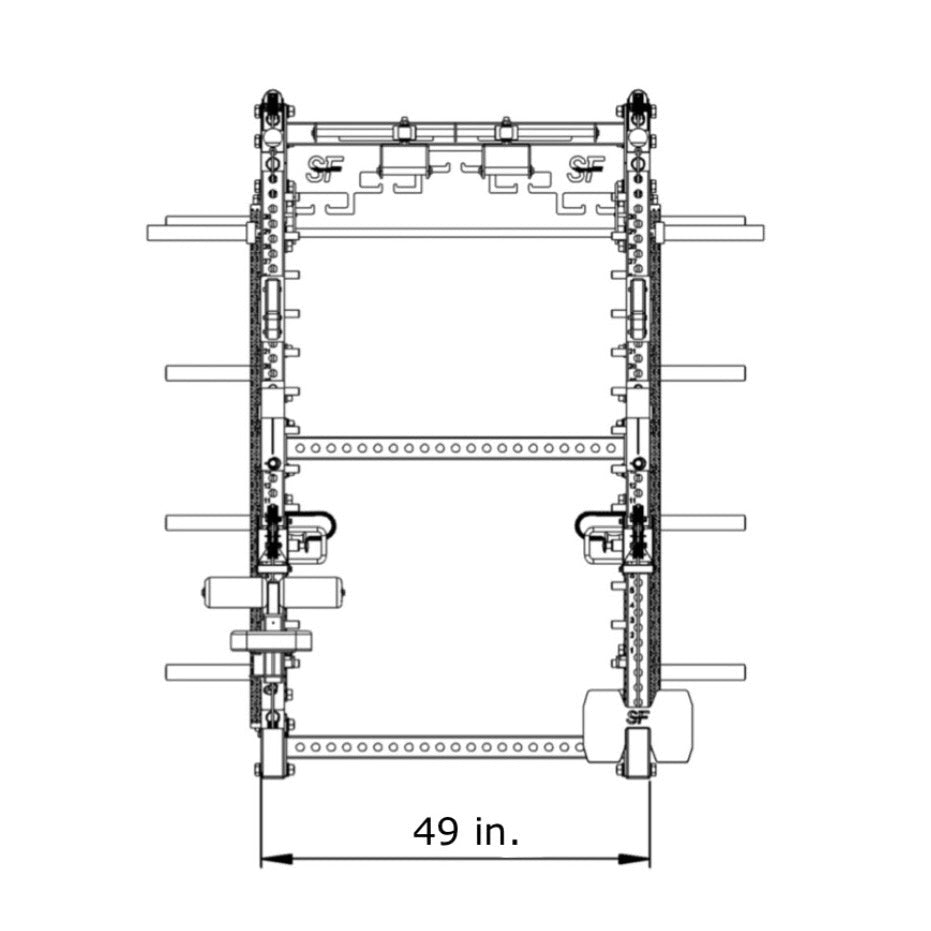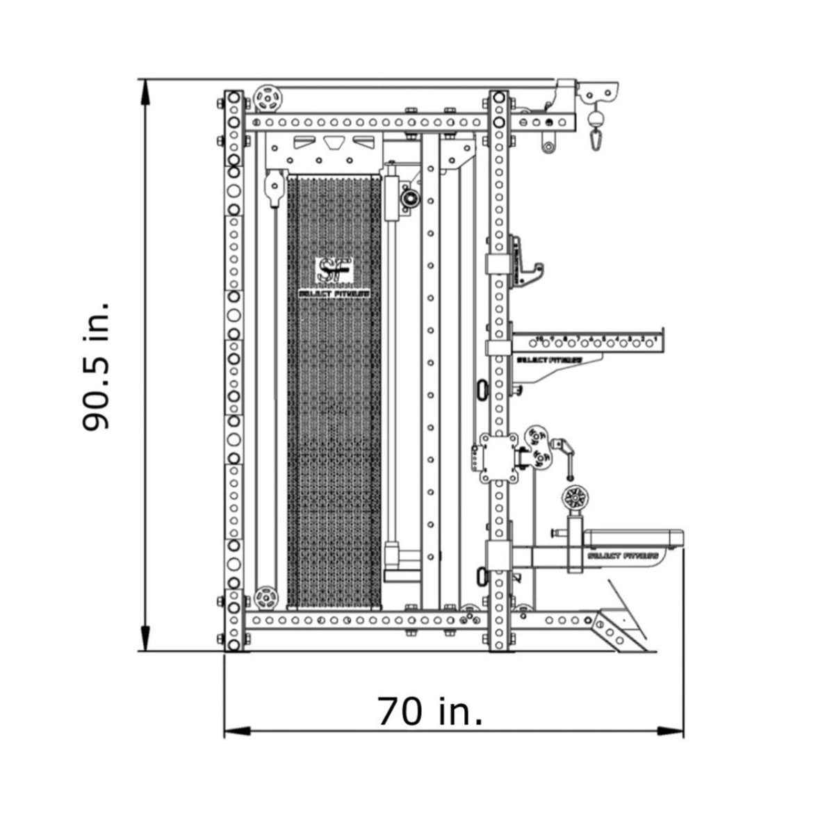 • Dimensions: 70” L x 49” W x 90.5” H | 78” Width when factoring the smith bar